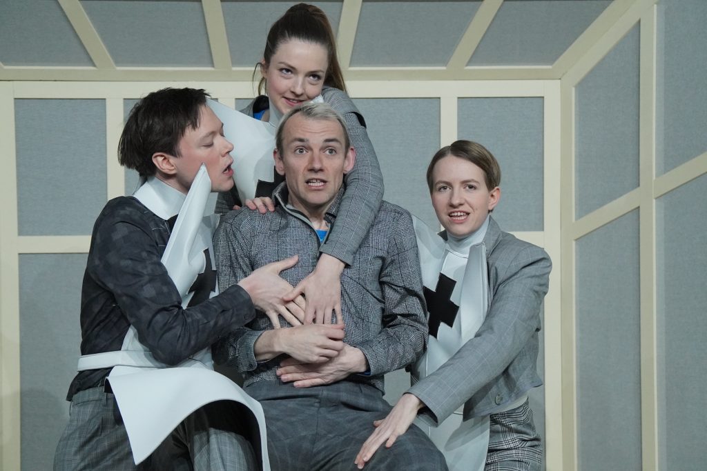 “Eva Lucia Grieser, Lauretta van de Merwe, Roman Pertl und Morris Weckherlin legen über eine Strecke von 90 Minuten eine Spielfreude an den Tag, die die Absurdität der Ausgangssituation, aber auch die Tragikomik der Szenen, die folgen, augenfällig macht.”